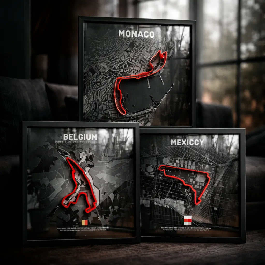 Circuitos legendarios de Fórmula 1 convertidos en arte minimalista en madera, diseñados para transformar cualquier espacio con estilo, velocidad y pasión por el automovilismo.